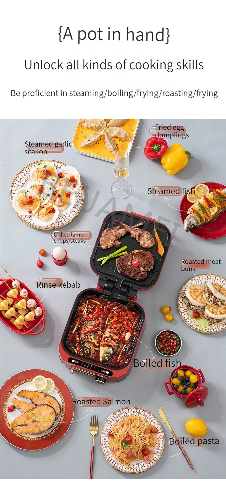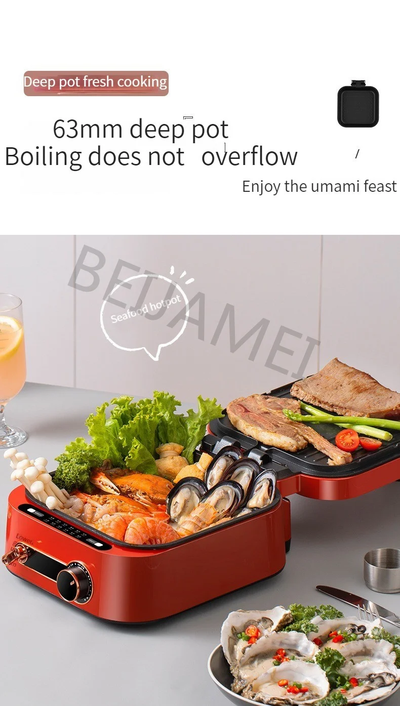 Rice Cooker Smokeless Frying Pan Steak BBQ Multi-Function Electric Cooker Non-Stick Pan 1800W Kitchen Appliances